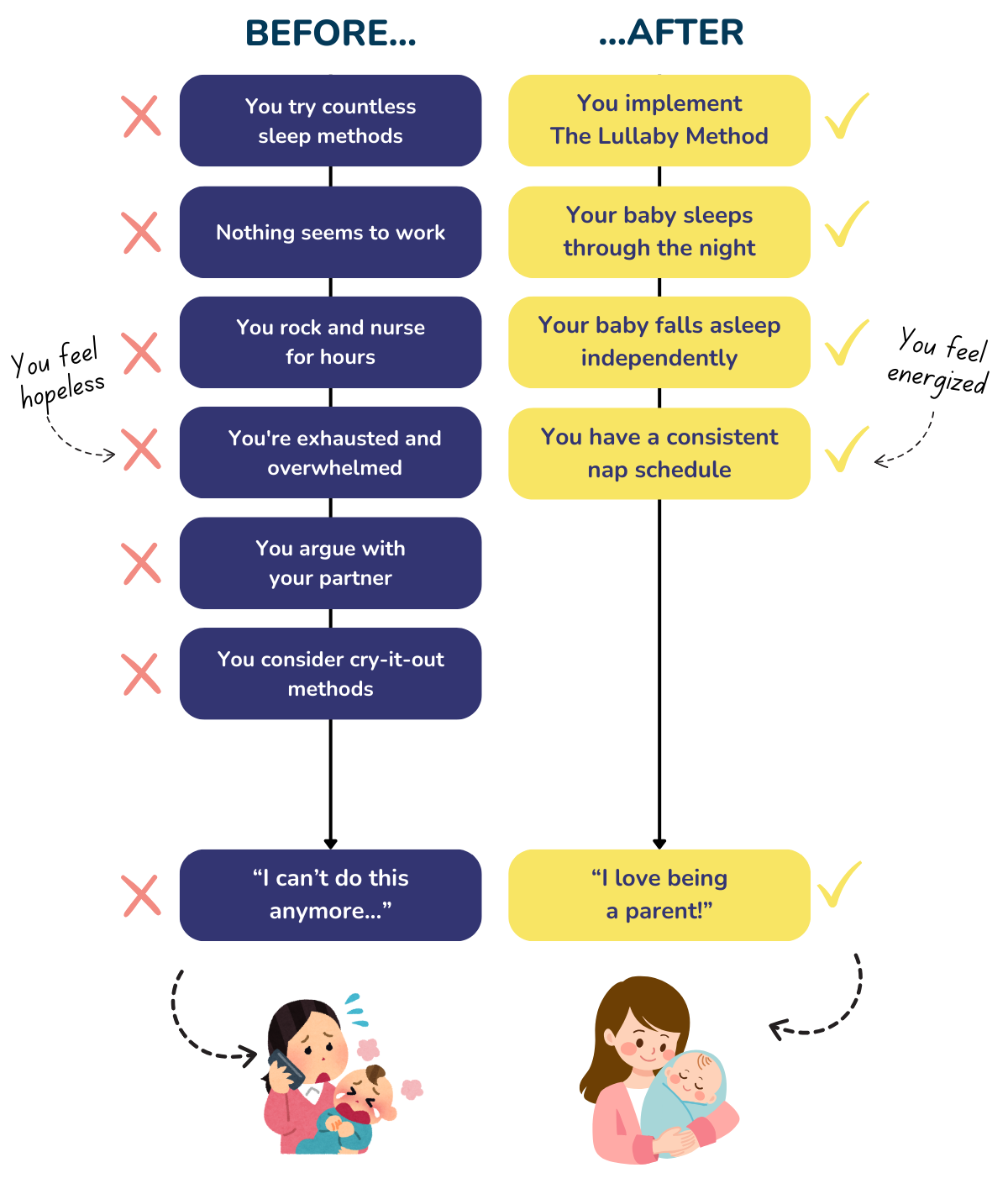 - You'll stop feeling overwhelmed, exhausted, or like a failure as a parent. This is how I felt when I was struggling with my firstborn's sleep… But within days, you'll have the tools to help your baby thrive, and you'll feel confident and in control again.
